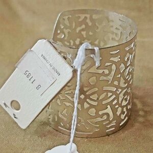 BRACELET, SILVER TONE METAL WITH CUT OUT DESIGNS, 6 ⅜ x 2 ½ INCHES, TAG ON, LEAD & NICKEL COMPLIANT, NO DAMAGE