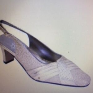 Never worn. Marked extra wide, fit like wide. Gorgeous shimmery closed toe slingback. Rhinestone button accent. Brand new in box. Cannot wear. paid $80 U.S.