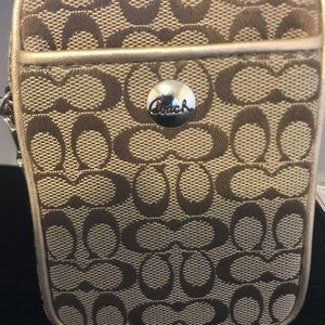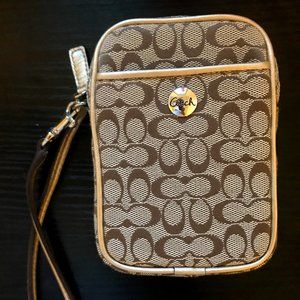 BRAND NEW! Coach Wristlet Tan Gold Monograph Print