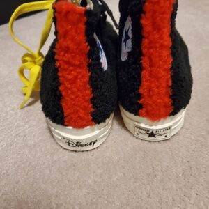 Supplied by a premier sneaker marketplace dealing with unworn, already sold out, in demand rarities. Each product is rigorously inspected by experienced experts guaranteeing authenticity. The Disney x Kith x Converse Chuck 70 Hi “Mickey Mouse Fur” celebrates the big-eared cartoon character’s 90th birthday in one of three limited colourways. Seen here is the “Fur” design that is an ode to Mickey Mouse’s status as one of the most popular stuffed animal toys of all time. The fuzzy black material covers the entire upper with a contrasting red stripe appearing on the heel. The tongue is also composed of the red teddy bear-like material with black cotton laces breaking up the look. Completing the adorable three-way collaboration is a cream midsole with a red-based Kith logo appearing near the forefoot. The Disney x Kith x Converse Chuck 70 Hi “Mickey Mouse Fur”