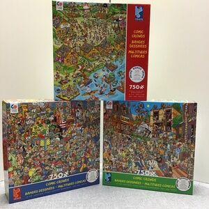 BRAND NEW! Lot of 3 CEACO puzzles - 750 pieces - COMIC CROWD COLLECTION