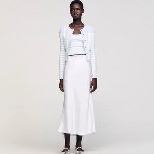 BRAND NEW SANDRO SATIN WHITE MAXI SKIRT
