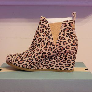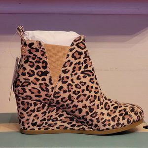 BRAND NEW TOMS, DESERT TAN LEOPARD SUEDE KELSY BOOTIES, 7.5!!!