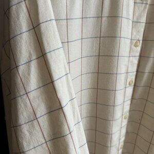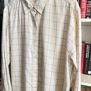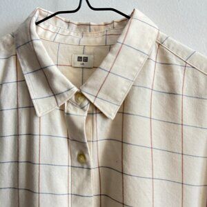 BRAND NEW | UNIQLO SOFT BRUSH BEIGE WHITE PLAID BUTTON SHIRT | SIZE L