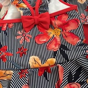 BRAND NEW baby girl mandarine & co red floral swimsuit / bathing suit / swimming