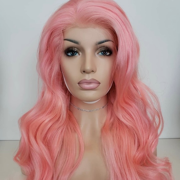 BRAND NEW never worn 22” custom luxury virgin hair Lace frontal glueless wig in light pink