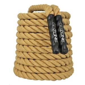 Engage back, arm, hand and core muscles for a total body workout with the GoZone 40ft Battle Rope. Non-slip handles allow you to easily grip and maneuver this rope. Wrap it around a tree when outdoors or around the base of your workout bench when indoors for different types of training. Switch up workouts between one arm and two to increase difficulty for your arm, back, and chest muscles. A fun alternative to traditional weights, battle ropes engage a variety of additional muscles and can also give you a calorie-burning cardio workout.