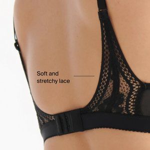 Featuring delicate sheer lace in a plunging neckline and back wing. For light support with the loveliest look. It's sexy made comfy in such soft, stretchy lace.