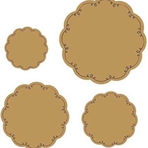 Brown kraft papers feature a printed black design on the scalloped border and can be written on with marker (sold separately) to specify what dish is being served