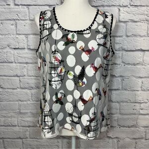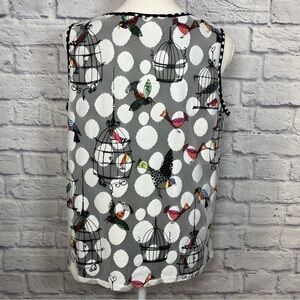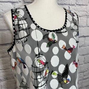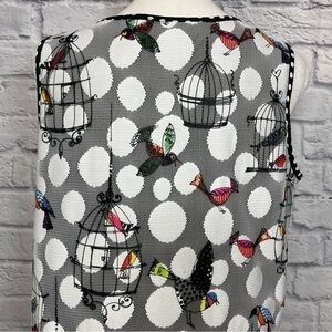 BRAND Unknown Polka Dot Bird and Cages Print on Mesh Overlay Top Size Unknown