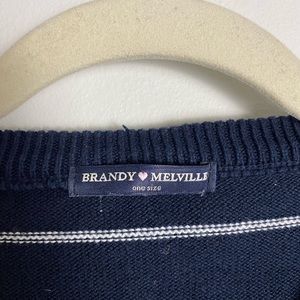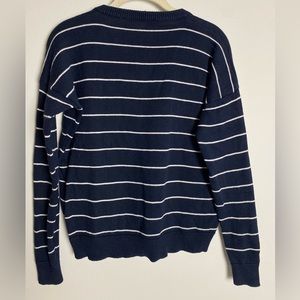 BRANDY Melville 100% Cotton Navy and White Nautical Striped V-Neck Sweater S/M