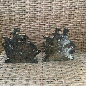 Brass Sailing Ship Bookends Set of 2 Vintage MCM