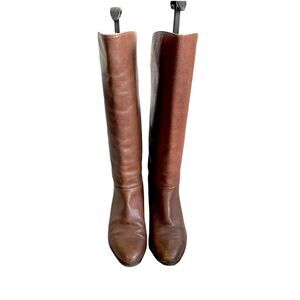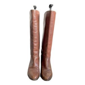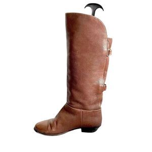 BRAVO BROWNS Italy Brown Leather Flat Tall Boots Buckles 36