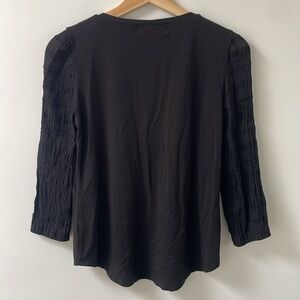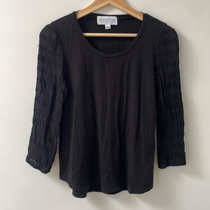 BRENDA BEDDOME 3/4 ELBOW PUFF SLEEVE TOP XS black semi sheer made in Canada