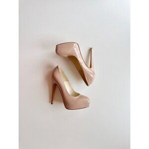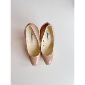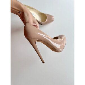 BRIAN ATWOOD Maniac 120 Nude Patent Leather Almond Toe Platform Pumps, Size 36.5