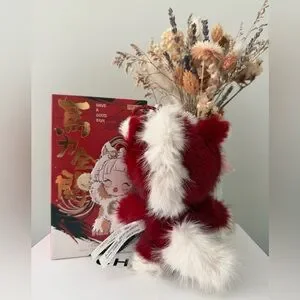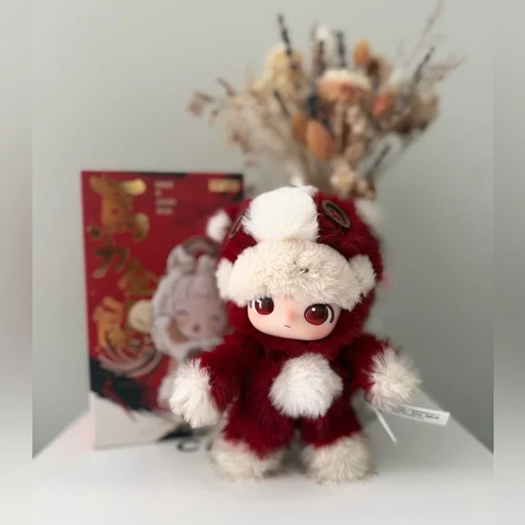 ๐๐๐ฌ๐ข๐ ๐ง: Dimoo is featured wearing a themed outfit in vibrant jujube red and off-white, embodying the spirit of "running toward the future".