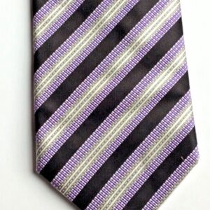 BRIONI purple, black stripes silk & cotton Tie handmade in Italy 🇮🇹