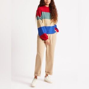 Featuring a feminine balloon sleeve, the relaxed fit Madero Sweater is easy to wear alone or layered up on chillier days. Designed with acrylic yarn-dyed stripe rib, this sweater is classic, while the block stripes add a fun pop of color.