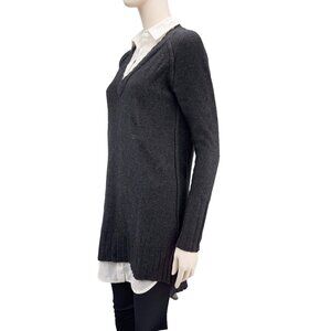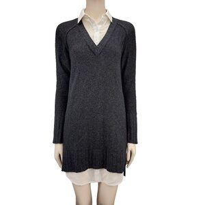 BROCHU WALKER The Looker Wool Cashmere Layered VNeck Grey White Sweater Dress XS