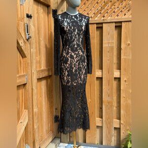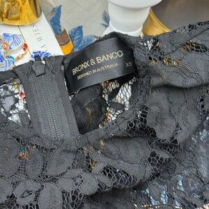🆕 BRONX & BANCO 🧿 NWOT Colette Noir Black Lace Gown, Sz XS US 2