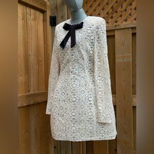🆕 BRONX & BANCO 🧿 NWOT Courtney Long Sleeve White Lace Mini Dress, Sz L US 8