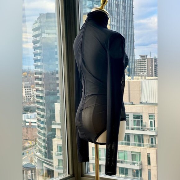 🆕 BRONX & BANCO 🧿 NWOT Gaia Mesh Long Sleeve Bodysuit, Black - Sz L / US 8