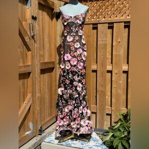 🆕 BRONX & BANCO 🧿 NWOT Jasmine Floral-Appliqued Gown, Black Multi - Sz L US 8