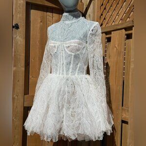 🆕 BRONX & BANCO 🧿 NWOT Maraya Arabella White Lace Mini Dress, Sz S US 4