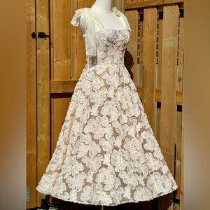 Elegance meets whimsy in Bronx & Banco's Sabrina Bridal Midi Dress from "La Danse Blanche" bridal collection.