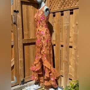 🆕 BRONX & BANCO🧿 NWOT Sicilia Coral Sequin Fluted Hem Maxi Dress, Sz M US 6