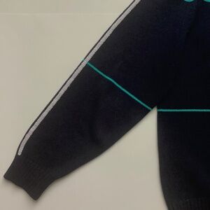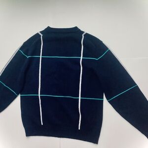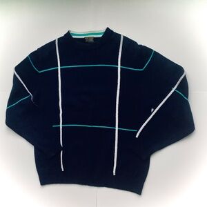BROOKS BROTHERS NAVY BLUE AND WINDOW PANE STRIPE PATTERN COTTON SWEATER