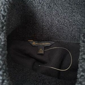 Stay stylish and comfy in this Quality Brooks Brothers High Funnel Neck Teddy Fleece Pullover. Neck has draw string. Ribbed knit hem and cuffs. Front welt pocket. Mesh lining.