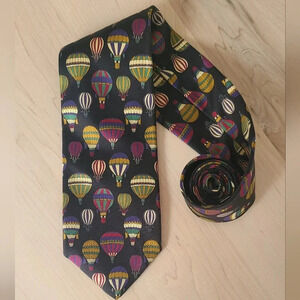 Beautiful and unique! Necktie by Brooks Brothers. Black with hot air balloon pattern.
