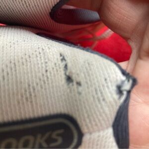 A small cut in the back has been repaired. Does not affect wear or performance. It hardly shows. Price reflects that.