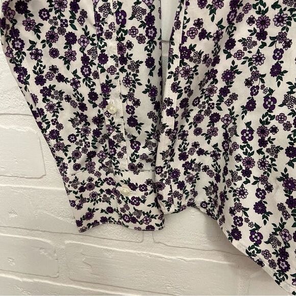 Beautiful Brooks brothers 1818 floral button down shirt size 6 white pink purple non iron. This is a fitted blouse 100% supima cotton. Great pre-own condition!