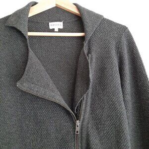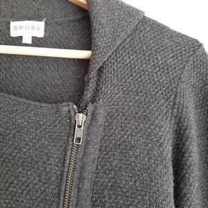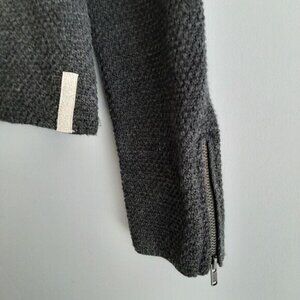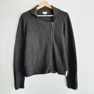 BRORA Merino Cashmere Blend Full Zip Knit Moto Style Cardigan Jacket Grey Sz S