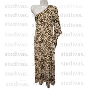 One Shoulder Maxi Dress cream with dark brown animal print long dress