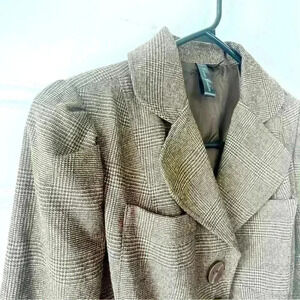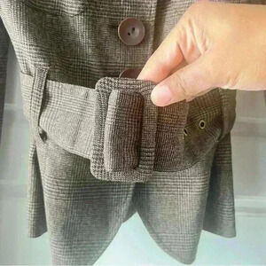 BROWN BLAZER WITH BELT SIZE SMALL GORGEOUS TRENDY PUFFY SHOULDER