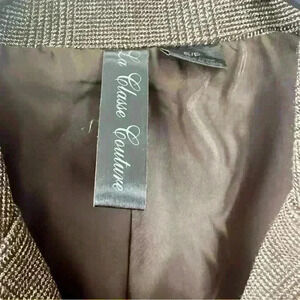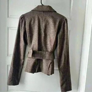 BROWN BLAZER WITH BELT GORGEOUS TRENDY PUFFY SHOULDER SIZE SMALL
