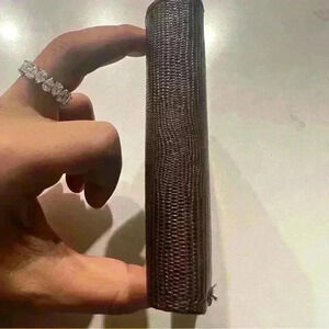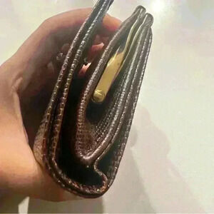 BROWN PIGSKIN LEATHER BIFOLD WALLET WITH GOLD TONE HARDWARE