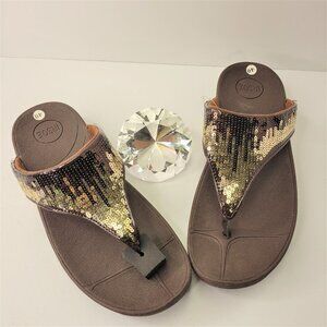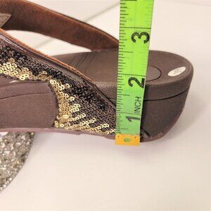 BROWN Sparkly Size 8 Summer Wedge Sandals Rhinestone Embellish Comfy Flip Flops