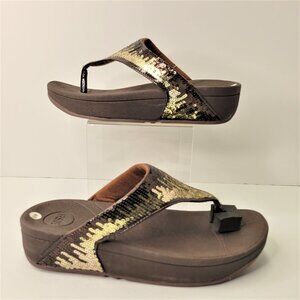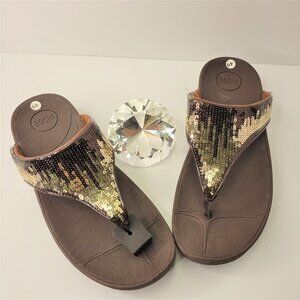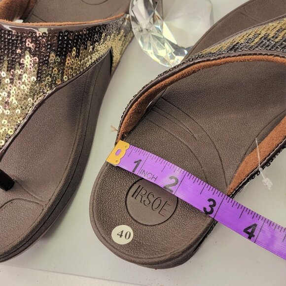 BROWN Sparkly Size 9 Summer Beach Wedge Sandals Bling Crystal Comfy Flip Flops