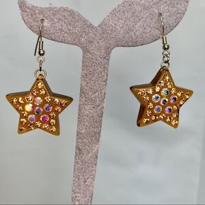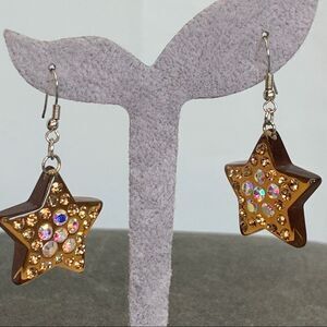 BROWN rhinestone embellished star earrings