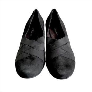 BROWNS Black Suede Slip On Wedge Shoes With Elastic 7.5
