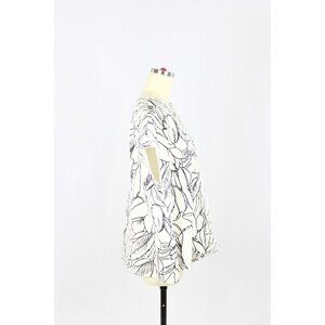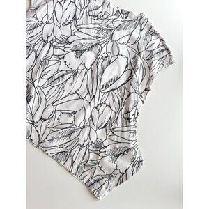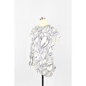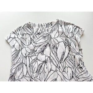 BRYN WALKER Ivy White Black Tulip Floral Cotton Oversized Tunic Top, Size S