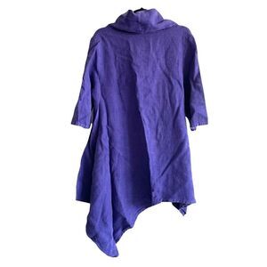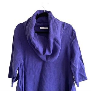 BRYN WALKER Purple Linen Lagenlook Cowl Neck Asymmetrical Lagenlook Tunic Draped Sides