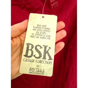BSK Casual Connection by Bershka Women One Shoulder Top - Medium Cotton Red NWT