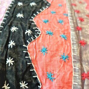 Patchwork fabric throw cover or bedspread measures 80" x 55"