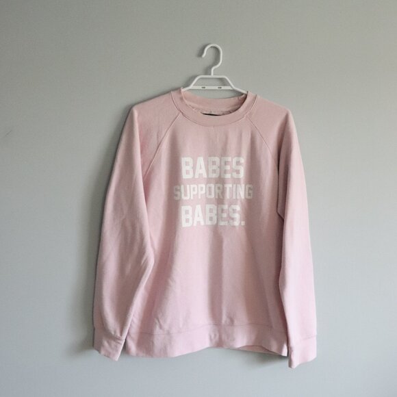 BTL Women's Pink Sz M/L 'Babes Supporting Babes' Fleece Crewneck Raglan Sweater