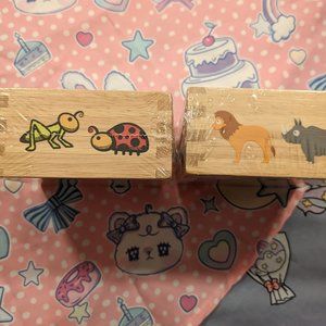 This 4-piece block set will please animal-crazy kids and their eco-minded parents. Mix and Match and solve 6 animal puzzles with this great first block set. Made from rubber wood with child-safe stains, the playset develops creative thinking and problem solving skills.